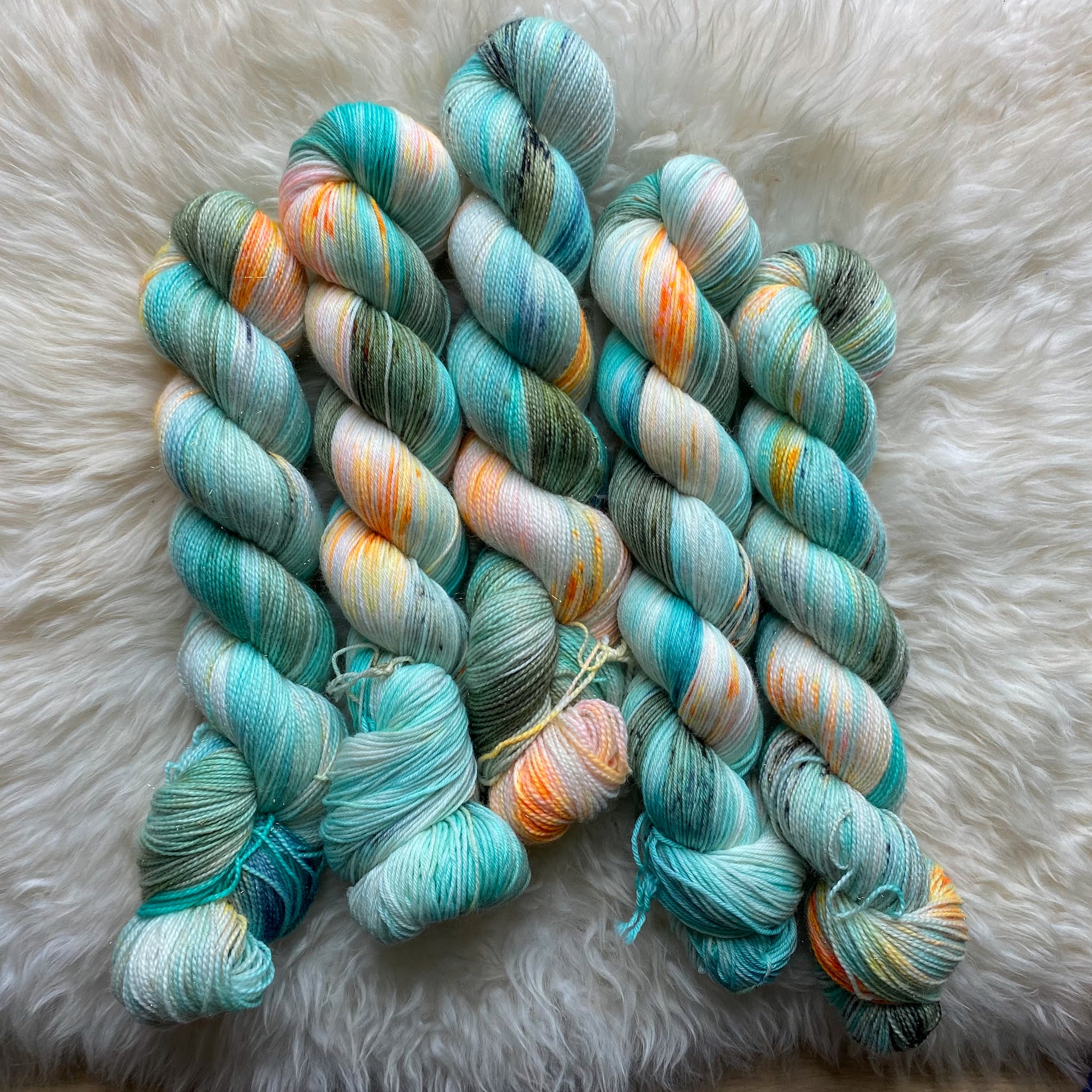 **This colorway is a PREORDER with an estimated shipping time of 4 weeks from the date you place your order. This is an estimated ship-by date, not necessarily an arrival date. Any other items purchased in the same transaction will ship when this skein is ready.**